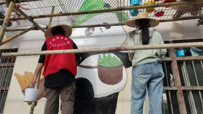 7月17日,实践团迎来了在双华镇开展手脚的第五天。黎明的阳光洒在幼儿园斑驳的墙面上,墙绘组的队员正在尽心绘画一幅幅机动趣味的丹青。从憨态可掬的国宝熊猫到充满童趣的龙猫形象,本来单调的墙面逐渐造成了一条色调斑斓的“故事长廊”。“咱们但愿通过这些绘画,不仅好意思化乡村环境,更能在孩子们心中播种好意思的种子。”墙绘组组长黄政同学先容说念。途经的村民纷纷存身不雅赏,时常发出赞誉之声。